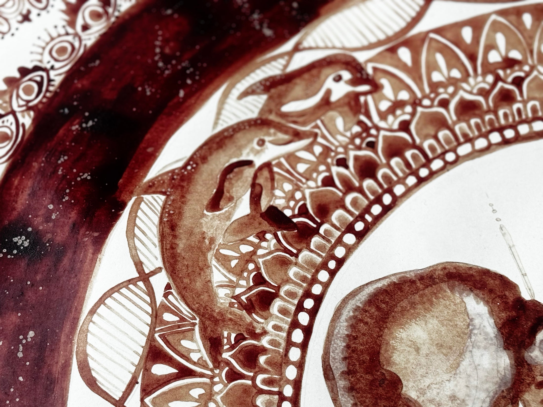 As of today, after many years working on female empowerment, self-love, conscious work, healing, meditation and spiritual practices, I can say without doubt that drawing and bringing sacredness to my menstrual blood has been the most healing initiation into womanhood I ever received in this lifetime.
