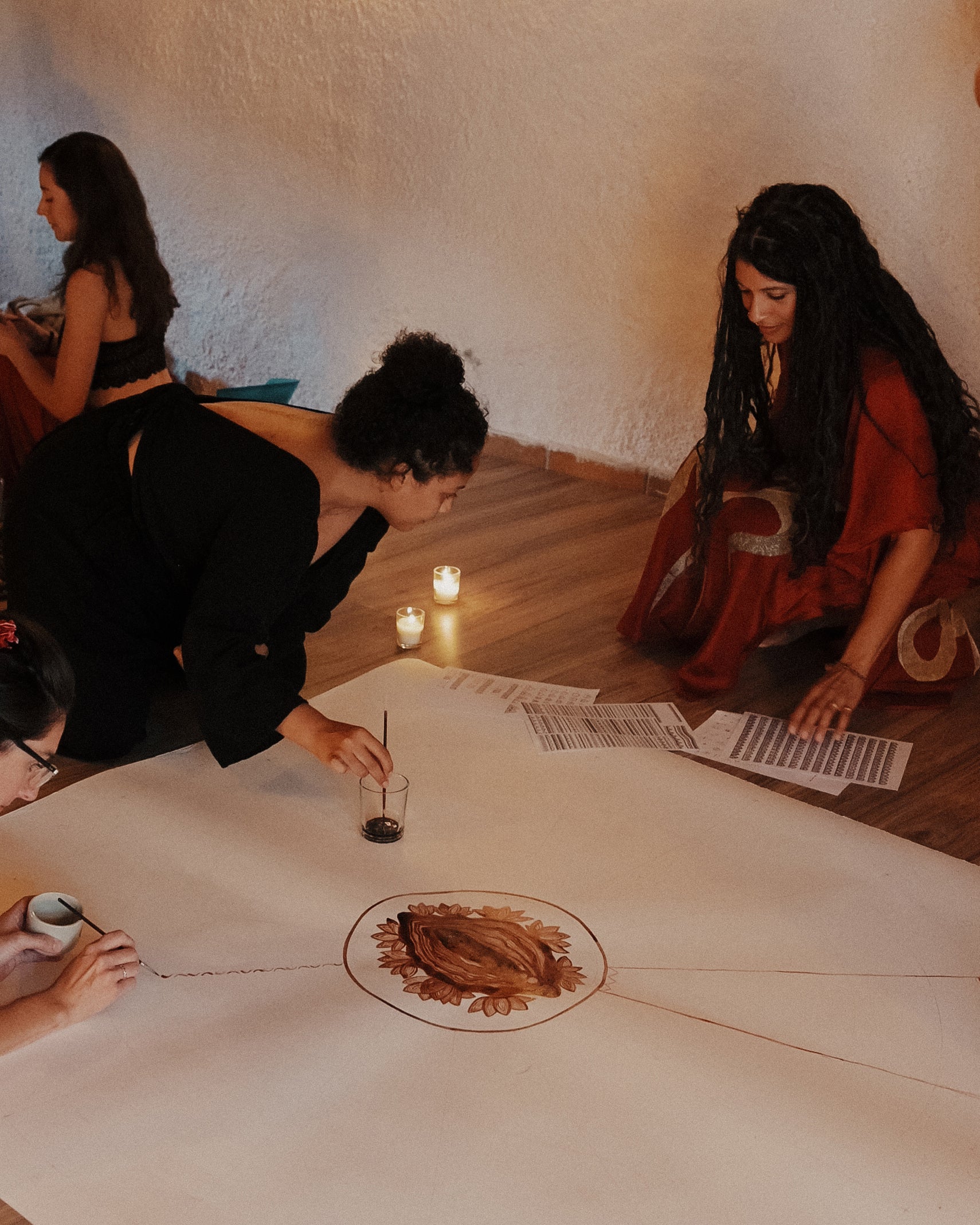 Hosting transformational retreats where women reconnect with their bodies, bleed in reverence, and create collective art