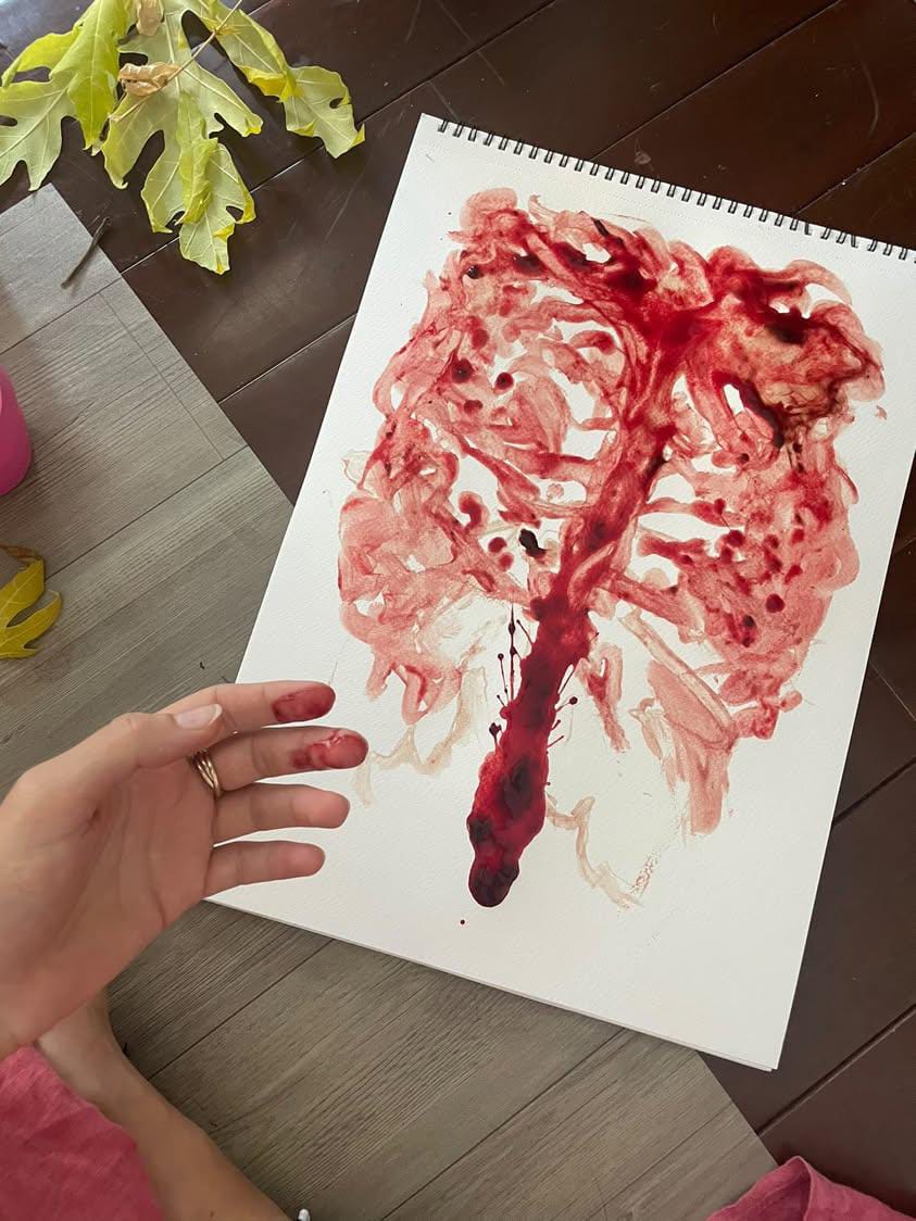 And as I shared my blood paintings online, they started resonating with women worldwide, inspiring them to explore their own stories through this powerful medium.